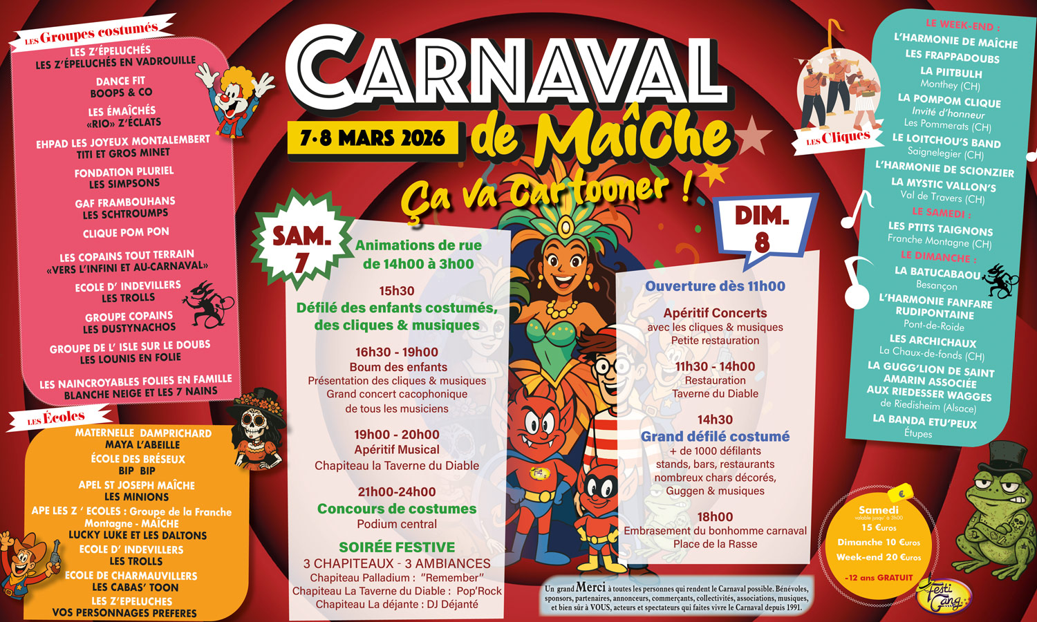 Notre association peut compter sur le soutien de partenaires institutionnels pour la mise en oeuvre du Carnaval de Maîche.